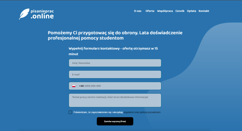 - Indywidualne podejście: Serwis oferuje spersonalizowane podejście do klientów. Zespół pisarzy i doradców pracuje z klientem, aby zrozumieć ich potrzeby, temat pracy, wytyczne uczelni oraz inne szczegóły, które są istotne dla stworzenia unikalnej i dopasowanej pracy dyplomowej.