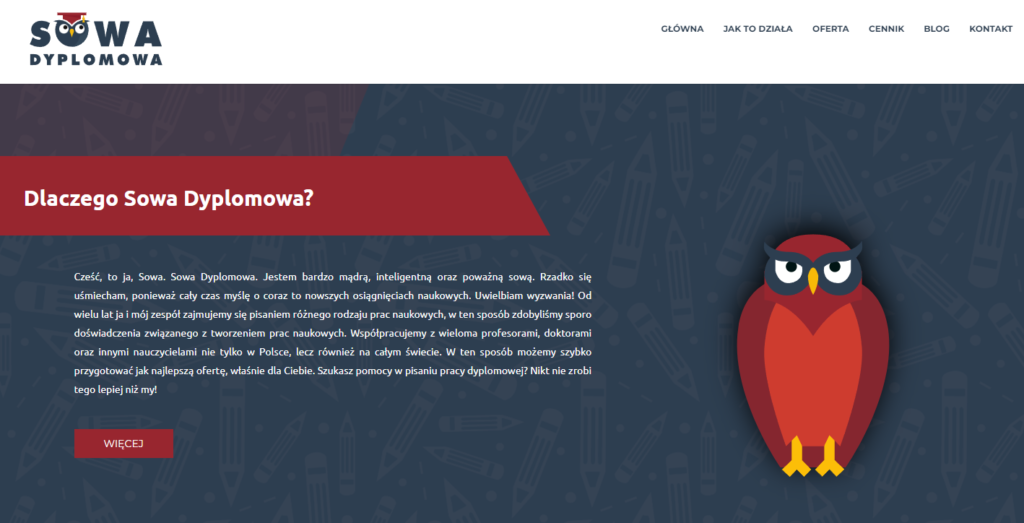 - Profesjonalizm i jakość: Serwis https://www.sowadyplomowa.pl/ stawia na wysoką jakość prac dyplomowych. Zespół pisarzy składający się z ekspertów w różnych dziedzinach nauki dba o dokładność, poprawność językową i logiczną strukturę prac. Ich celem jest dostarczenie profesjonalnych prac, które spełnią wymagania akademickie.